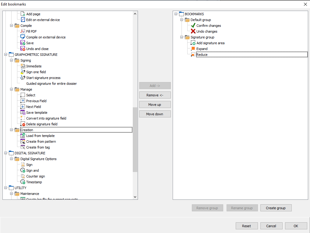 On many occasions, when operating flows are already coded and predetermined, it is recommended to customize the prefered tab. For example if in a certain work flow, a user must always do the same operation - verify identifying documents, fill in the form and add a digital signature - the user can customize the prefered tab and add, in the appropriate order, the sign application buttons for each function. In this example, capture from scanner, fill PDF, and start signature process could be added.