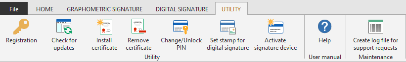 Registration and Graphometric Signature License: To apply for a graphometric signature, you must have a certificate issued by Namirial SPA and apply for a license. The license is nominal and valid for one PC. It must be requested at the first installation and may be moved to another machine if necessary. All license-related functions are accessible via the "Register" button